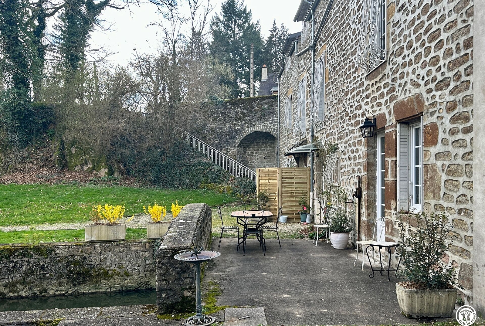 En quête de calme et de nature, vous serez comblés en séjournant dans cet hébergement de plain-pied. Le logement se trouve au rez-de-chaussée de l'ancien moulin, habitation des propriétaires. Le bief passe sous le logement et la terrasse avec table, chaises, parasol et barbecue se trouve au-dessus du bief.